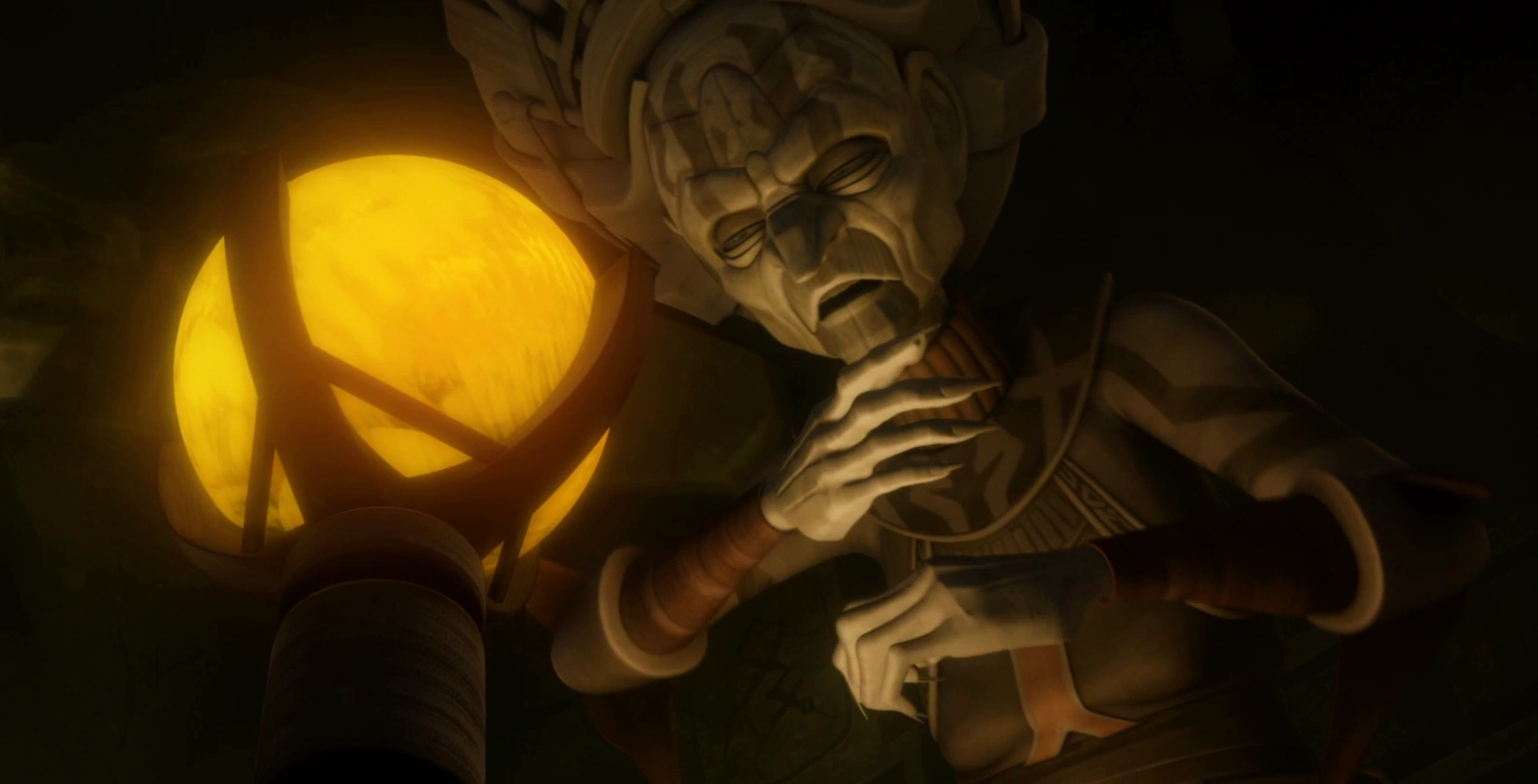 不仲だったアソーカとサビーヌ師弟の過去の事情がヒュイヤンの口から明かされた。曰く「戦争の終わりのマンダロア粛清の際に、アソーカはサビーヌが間違った道へ進むことを恐れ、訓練を辞めた」そうだ。サビーヌが暗黒面へと堕ちることを恐れたように聞こえる。第四話ではベイランが「アソーカのせいでサビーヌの家族が死んだ」と語っていたが、これは同じ出来事なのだろうか?ベイランはその出来事の「ある視点からの真実」を告げ、力を与えなかったアソーカを責めてサビーヌに取り入ったのか。二人の口から直接語られたわけではなく判然としないので、今後さらなる描写があるかもしれない。